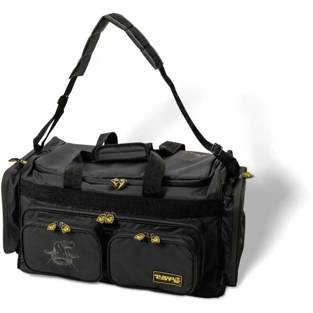 Robuste Freizeit- und Transporttasche im Black Cat Design. Sie hat eine große Öffnung für das Hauptfach. Die kleineren Fächer sind außen aufgesetzt – so bleibt das ganze Volumen des Hauptfachs erhalten.
