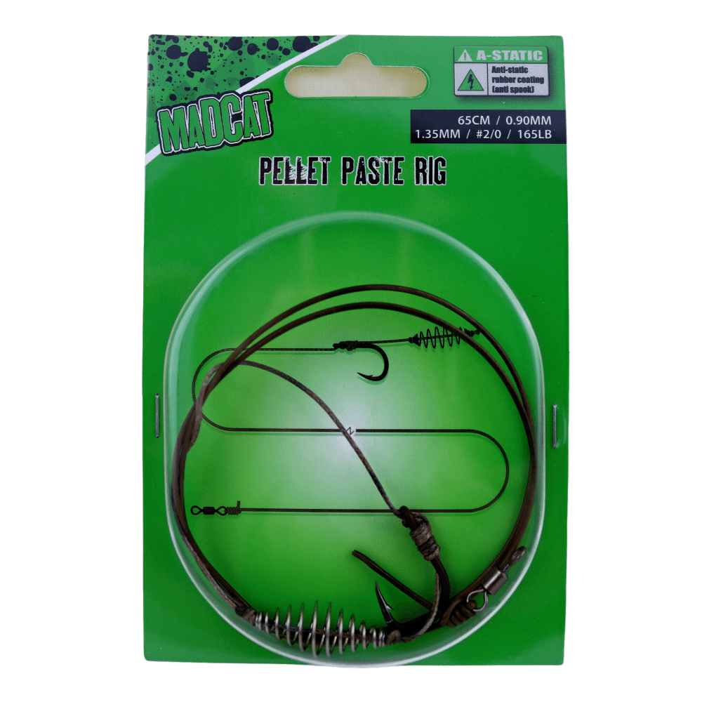 Spezielles Rig – entwickelt für die Verwendung mit MADCAT Pellet Paste. Mit einer Teigspirale am Haar, die eine langsame, sehr attraktive Aromafreisetzung direkt am Haken ermöglicht. Sie werden mit mehr Bissen belohnt. Dennoch sollten Sie das Rig regelmäßig überprüfen, um sicherzustellen, dass die Paste noch intakt ist. Gebunden mit MADCAT Skin Line.