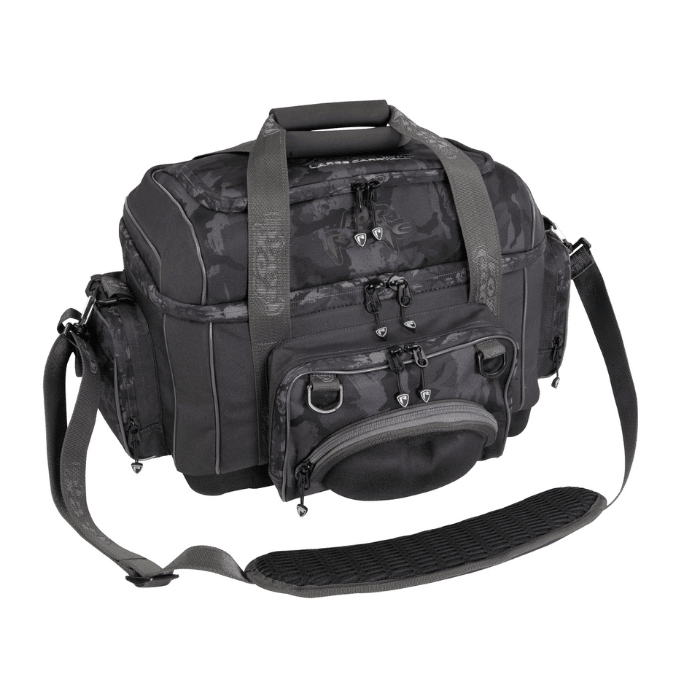Die Voyager Camo Large Carryall von Fox Rage ist komplett mit Tackleboxen bestückt. Im Lieferumfang sind 4 Medium Shallow und eine Small Tackle Box enthalten. Die Voyager Camo Large Carryall ist in dem Fox Rage Camo Design entworfen. Die Tasche verfügt über hochrobuste Camo-Tarnreißverschlüsse sowie einem 3D-gepolsterten Schultertragegurt. Die Handtragegriffe sowie die Taschenbasis bestehen aus dem beliebten EVA-Material. Besonders praktisch ist die Federzugbefestigung für Werkzeuge sowie die klettgesicherte Halterung für Zangen.