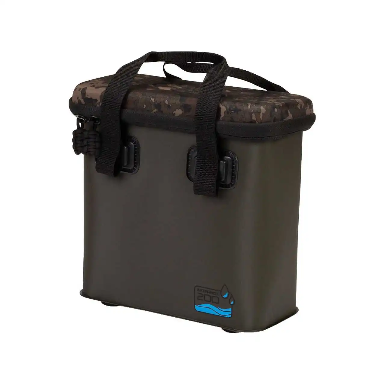 Ausgestattet ist diese Tasche mit zwei Tragegriffen, vorgeformten Füßen und einer Deckelaussparung zum Stapeln mit anderen Water-Boxen.