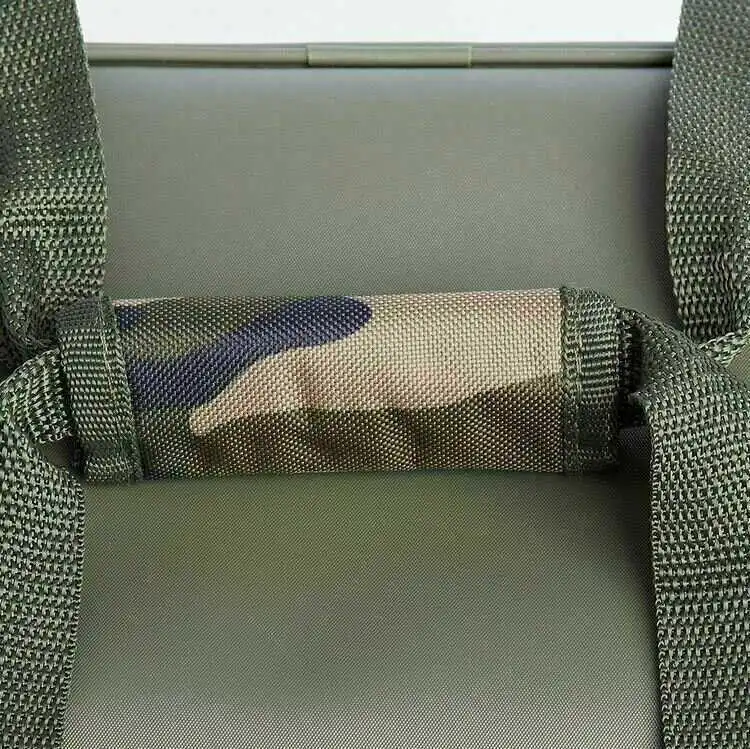 Die Tragetasche verfügt über eine Fronttasche mit einem Reißverschluss, die für die meisten mittelgroßen Tackle- und Rig-Boxen geeignet ist sowie eine zusätzliche Reißverschlusstasche am Deckel – der ideale Ort, um Bissanzeiger oder Buzzer Bars aufzubewahren. Sowohl die Trage- als auch die Gebrauchstaschen verfügen über abnehmbare und verstellbare, gepolsterte Tragegriffe und hochwertige, korrosionsbeständige Reißverschlüsse.