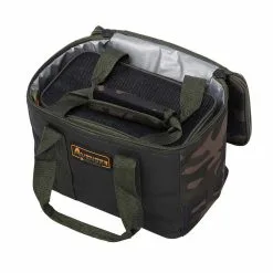 Die Tragetasche verfügt über eine Fronttasche mit einem Reißverschluss, die für die meisten mittelgroßen Tackle- und Rig-Boxen geeignet ist sowie eine zusätzliche Reißverschlusstasche am Deckel – der ideale Ort, um Bissanzeiger oder Buzzer Bars aufzubewahren. Sowohl die Trage- als auch die Gebrauchstaschen verfügen über abnehmbare und verstellbare, gepolsterte Tragegriffe und hochwertige, korrosionsbeständige Reißverschlüsse.