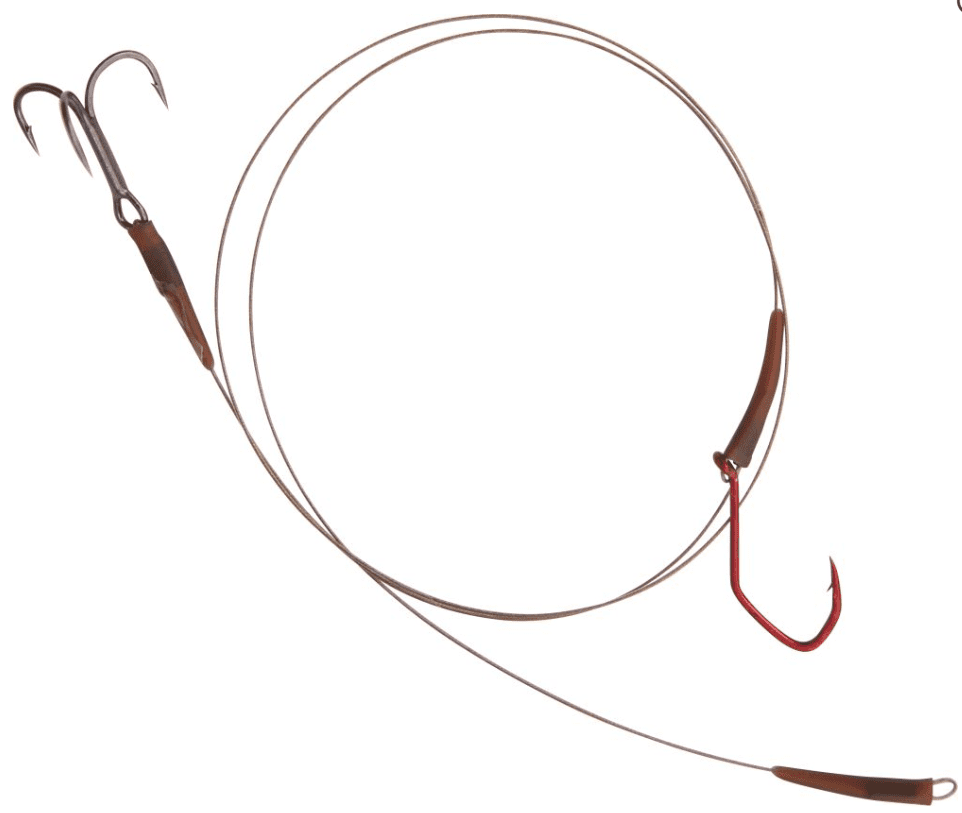 Float Rig Leader: fertige Rigs für die Posenangelei, ausgestattet mit hochwertigen Carbon Stahl-Haken gebunden auf ungefälligen Camo-Stahlvorfach.