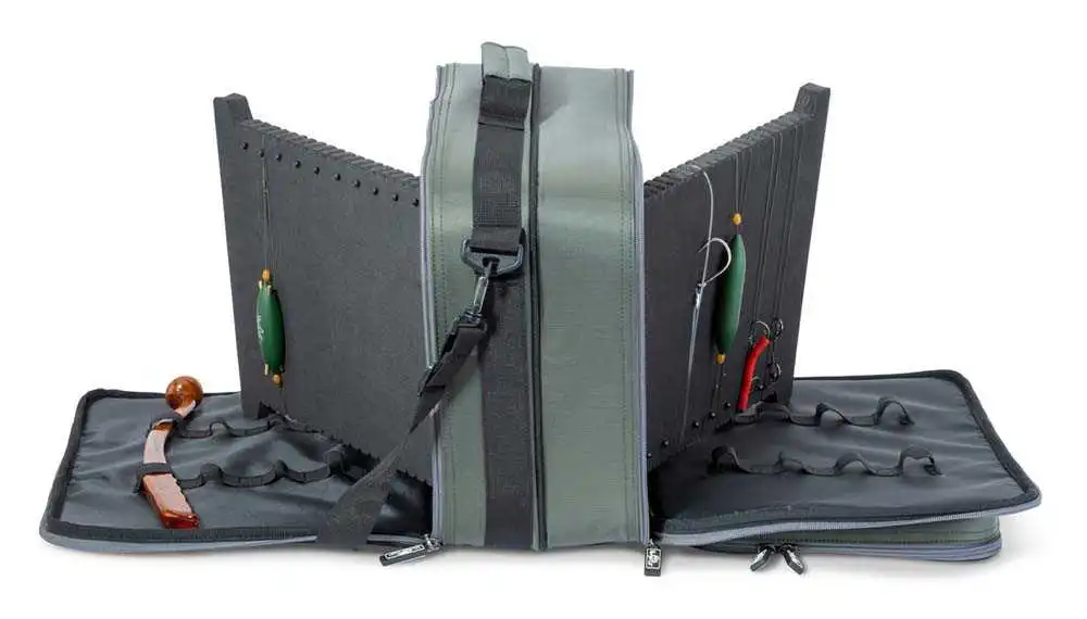 Transportieren Sie Ihre Wallerhölzer und fertigen Rigs geordnet ans Wasser in einer gut durchdachten, multifunktionalen Tasche.
