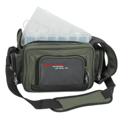 Kleine, handliche Tasche, passt zusammengeklappt in jeden Rucksack. Drei Boxen für Kleinteile oder Spinner sind im Lieferumfang enthalten.